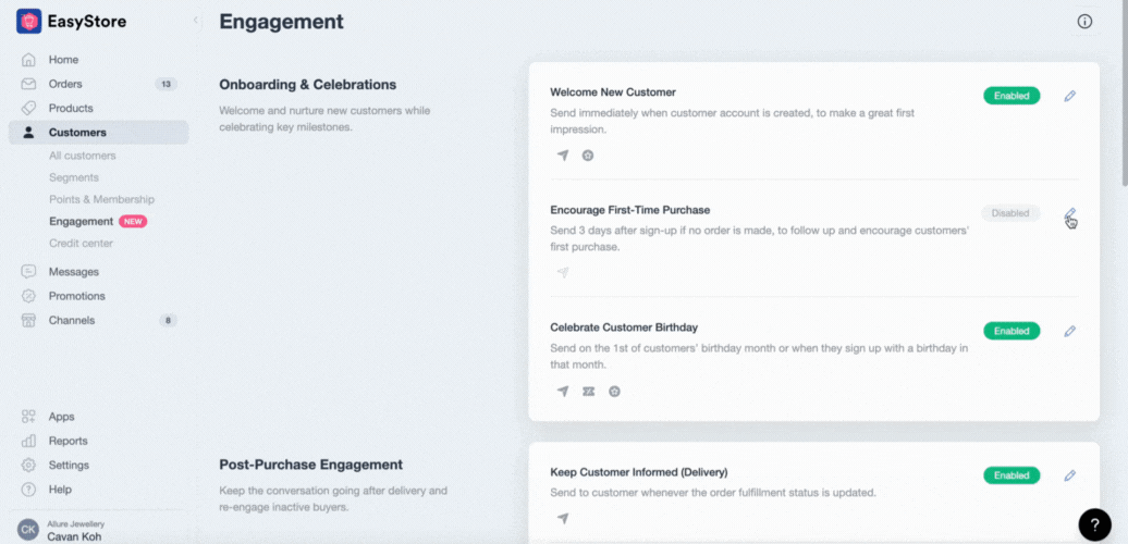 Whether it’s welcoming new shoppers, thanking customers after a successful delivery, or re-engaging those who haven’t purchased in a while.