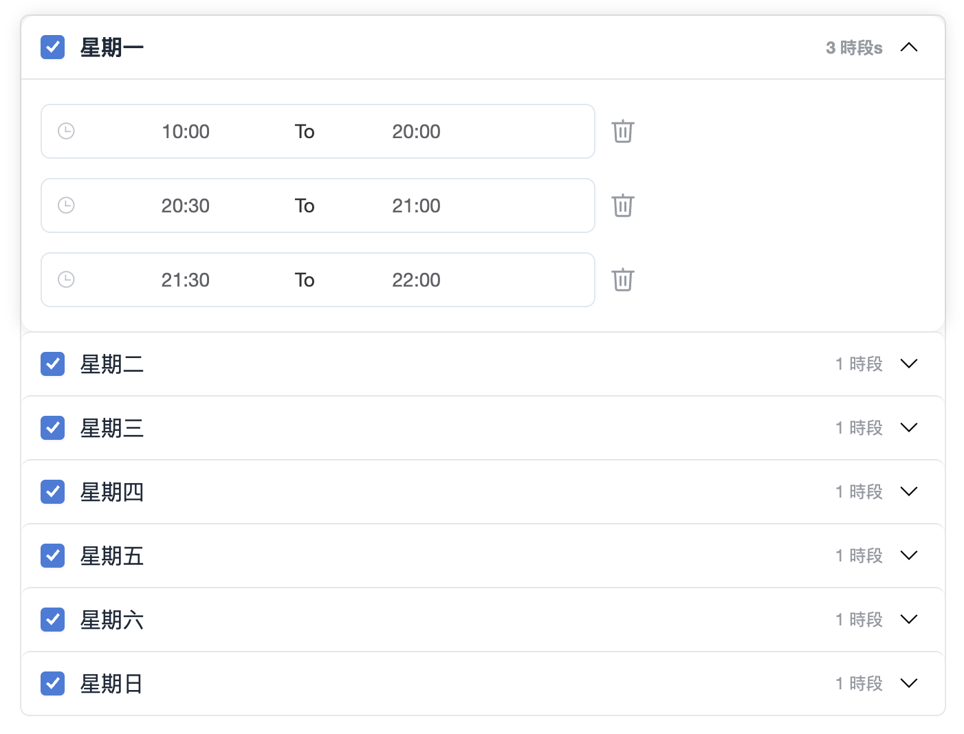 過往顧客選擇實體取貨時,每日僅能顯示 1 個營業時段,遇到中午休息或特殊時段時,顧客可能因資訊不清而撲空,影響購買體驗。現在每日可設定最多 3 個營業時段,讓商家能清楚顯示週一至週日的營業時間,讓取貨資訊更準確、體驗更順暢,進一步提升顧客滿意度與品牌好感。