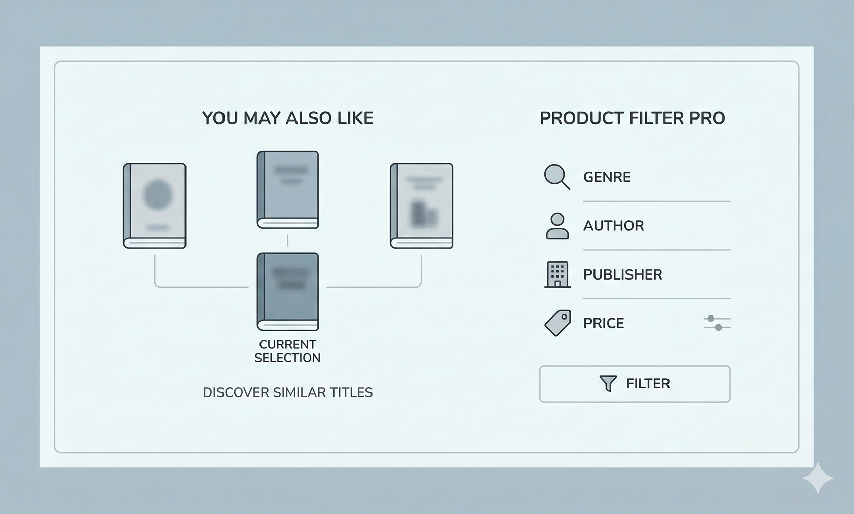 Related product suggestions such as “You May Also Like” help readers discover similar titles. Product Filter Pro allows them to narrow options by genre, author, publisher, or price.