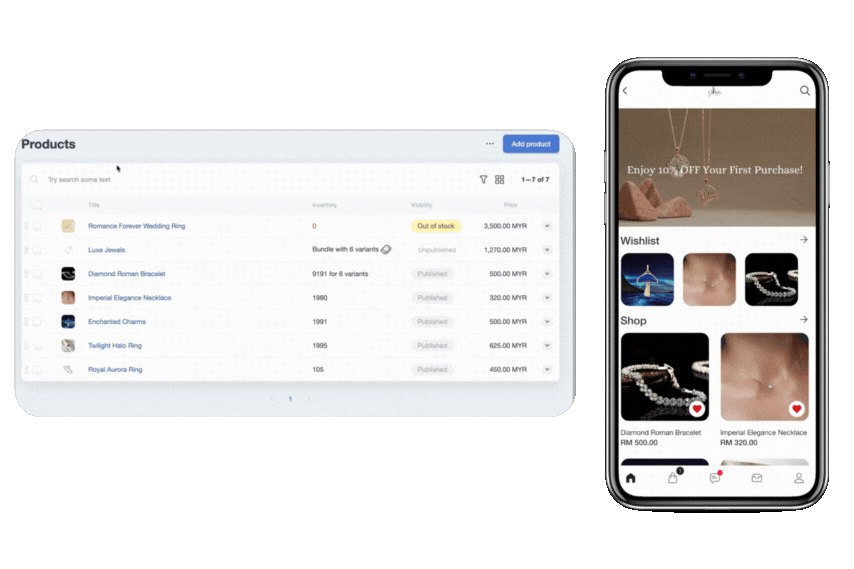 With sold-out items pushed to the bottom, shoppers won’t lose momentum the moment they land in your product page in their "Online Store" or "Shopping App".