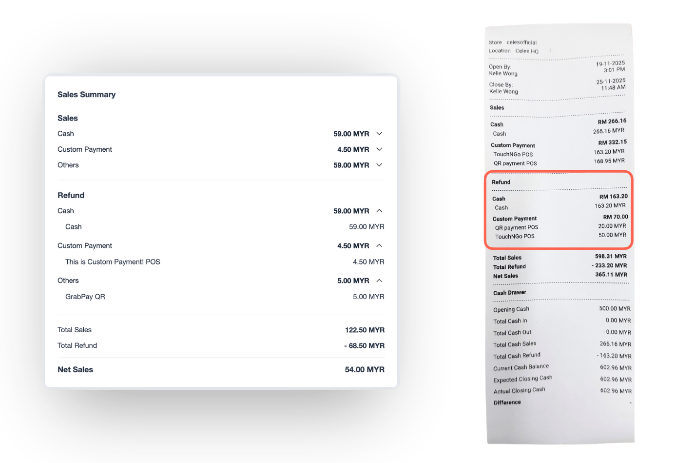 This update improves operational transparency and accountability, making it easier to reconcile refunds at the end of each shift.
