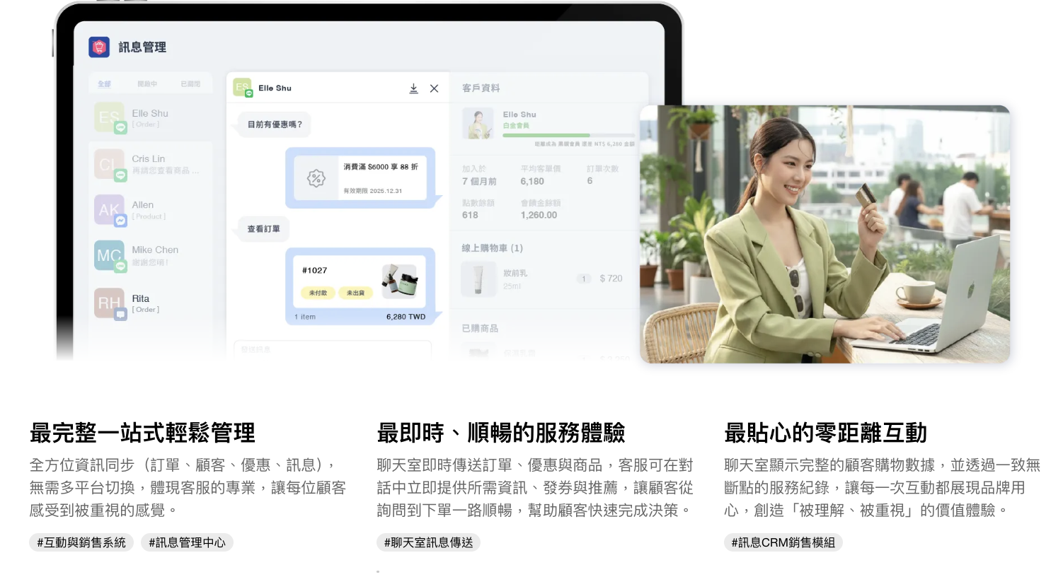 1.多管道銷售:讓商品同時在官網、IG Shop、LINE、FB、門市曝光